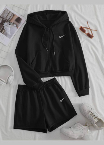 Стильний жіночий костюм, що складається з укороченого худі оверсайз та шортів з високою посадкою. Худі має глибокий капюшон, застібку-блискавку та манжети з основної тканини. Вільний крій оверсайз забезпечує комфорт та свободу рухів. Шорти з високою посадкою візуально подовжують ноги та підкреслюють талію. Костюм виконаний з якісної тканини двунитка, прикрашений акуратною накаткою. Цей комплект стане чудовим вибором для прогулянок, занять спортом або створення модних повсякденних образів.