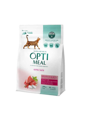 Сухий повнораціонний корм Veal Extra Taste Cat від українського виробника OptiMeal дозволить створи повноцінне та збалансоване харчування пухнастому улюбленцю. Супер-преміум формула корму який виготовляється в Україні за швейцарською рецептурою та європейськими стандартами. Корм ретельно протестований та схвалений ветеринарами. В складі міститься понад 60% протеїнів тваринного походження, що дозволяє швидко наситити кота та запобігти переїданню. М'ясо свіжої телятини має дуже привабливий запах та смак для котиків. Навіть капризуни із задоволенням смакуватимуть корм. Телятина чудово перетравлюється та є дієтичним продуктом. Саме тому ветеринари рекомендують корм з телятиною для корегування ваги в пухнастиків та харчових дієт. М'ясо легко засвоюється, що сприяє травленню та не провокує кишкові розлади у тварини. Рецептура корму має ретельно підібраний комплекс поживних речовин, які позитивно впливають на розвиток та стан організму. В складі міститься спеціально розроблений комплекс Immunity Support Mix, який зміцнює імунітет тварини та ефективно захищає її від вірусів та бактерій. Омега-3 та Омега-6 в поєднанні з цинком і біотином підтримують здоров'я шерсті та шкіри кота, її гарний вигляд та гладкість. Спеціальні пребіотики нового покоління Actigen забезпечують вихованцю здорове травлення та підтримують правильну мікрофлору в кишківнику. Переваги: Збалансована м'ясна формула; Оптимальний амінокислотний склад; Чудовий комплекс вітамінів та мінералів; Натуральний антиоксидант SubStar ULTRA для захисту від вірусів; Підтримує здоров'я шерсті та шкіри; Спеціально очищенні бета-глюкани забезпечують довголіття; Натуральні трави та ягоди, як природне джерело вітамінів. Добавки: Поживні добавки на 1 кг корму, мг/кг: вітамін А (3a672a): 15 000 МО, вітамін Д3 (3a671): 750 МО, вітамін Е (3a700): 600, вітамін С (3a300): 200, вітамін B6 (3a831): 6, біотин (3a880): 0,08, таурин (3a370): 2 100; мікроелементи: залізо (3b104): 35, йод (3b201): 2,5, мідь (3b405): 8,2, марганець (3b503): 38, цинк (3b604): 148, селен (E8): 0,09; амінокислота: DL-метіонін (3с301): 2 500. Технологічні добавки на 1 кг корму, мг/кг: антиоксидант природного походження: 300, екстракт токоферолу природного походження: 500. Поживна цінність (аналіз) корму: сирий протеїн – 34 %, сирий жир – 16 %, сира зола – 6,6 %, сира клітковина – 1,5 %, кальцій – 1,25 %, фосфор – 1,05 %, магній – 0,09 %. На 1 kg (кг) корму: омега- 3 жирні кислоти – 5,4 g (г), омега- 6 жирні кислоти – 29,5 g (г). 63,19 % протеїнів корму – тваринного походження. Енергетична цінність (калорійність) 100 г корму: 1683,43 кДж (402,36 ккал). Зберігати у закритій спожитковій тарі в темному місці за температури від +5 ºС до +25 ºС та відносної вологості не більше, ніж 75 %. Рекомендоване денне годування: Вага тварини, кг Кількість корму, г/день 2 25-30 3 37-45 4 50-60 5 62-75 6 75-89 Корм необхідно вводити в раціон поступово (принаймні протягом перших 5-ти днів). Забезпечте тварині постійний доступ до чистої свіжої питної води. Індивідуальні норми годування можуть змінюватися, залежно від віку, породи, рівня активності та середовища перебування тварини.