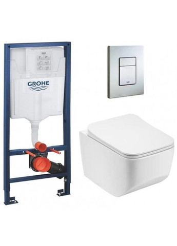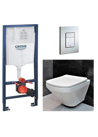 Підвісний унітаз DUSEL спільно з якісною інсталяцією GROHE – ідеальний комплект із гарною ціновою пропозицією. Даний комплект складається з наступних позицій: Grohe Система інсталяції для унітазу GROHE Rapid SL (1,13 м) з підключеннями (38840000) Grohe Панель змиву для унітазу EVEN (38966KF0) Унітаз Dusel CUBIS DWHT10201030R DWHT10201030R: Унітаз підвісний DUSEL CUBIS є безободковою чашею з горизонтальним зливом, постачається в комплекті зі швидкознімним дюропластовим сидінням Soft Close і настановним комплектом. На поверхню всіх унітазів DUSEL нанесено спеціальне покриття Extra Clean, завдяки якому догляд за виробом буде набагато легшим, ніж за звичайною керамікою. На ідеально гладкій поверхні не утримується бруд та вапняний наліт, всі відходи легко змиваються водою. Кераміка від DUSEL надовго збереже свій бездоганний зовнішній вигляд та колір. Матеріал сидіння досить стійкий до появи подряпин. Кріплення кришки виготовлені з нержавіючої сталі і витримають тривалий термін експлуатації. Головні переваги підвісних унітазів DUSEL: · Грязевідштовхувальне покриття ExtraClean · Дюропластові сидіння з функцією плавного закривання кришки-Soft Close · Система швидкого монтажу/зняття кришки Quick-Fix · Якісні настановні комплекти та кріплення · Стійкість : Горизонтальне Безободковий : Так Форма : Прямокутна Тип виробу : Унітаз підвісний Колір виробу : Білий Комплектація : Без бачка Сидіння, кришка : Сидіння для унітазу Slim Soft-close Матеріал сидіння : Дюропласт Бренд : DUS1 Серія : 3 Висота : 350 Grohe Панель змиву для унітазу EVEN (38966KF0): Колекція: Even Поверхня: Фантомний чорний Матеріал: ABS пластик Призначення: Для унітазу Режими змиву: Двооб'ємний, старт-стоп, безперервний Тип монтажу панелі змиву: Довжина упаковки: 206 мм Ширина упаковки: 166 мм Висота упаковки: 107 мм Вага упаковки: 0.46 кг EAN: 4005176706400 Країна виробник: Німеччина Гарантія: 72 місяців Grohe Система інсталяції для унітазу GROHE Rapid SL (1,13 м) Rapid SL Поверхня: Синій Призначення: Для унітазу Панель змиву в комплекті: Не в комплекті Приладдя для монтажу перед стіною в комплекті: У комплекті Довжина упаковки: 1170 мм Ширина упаковки: 520 мм Висота упаковки: 150 мм Вага упаковки: 11.62 кг E6:50 Гарантія: 132 місяців Товар на сайті постачальника: