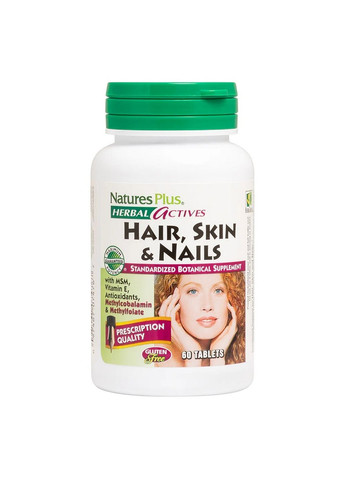 Відправка протягом 2-4 робочих днів. Natures Plus Herbal Actives Hair, Skin and Nails призначений для забезпечення структури, міцності, підтримки та еластичності волосся, шкіри та нігтів. Цей комплекс поєднує найбільш відомі поживні речовини для підтримки Вашої природної краси. Особливості: Підтримка сильного, еластичного волосся, шкіри та нігтів Містить Earthmade®, рослинний косметичний комплекс МСМ, плюс вечірня примула, зелений чай, гінкго та інші рослинні компоненти Містить біотин, кальцій та цинк Стандартизовано для постійної активності До складу входять вітаміни групи В, які комплексно впливають на здоров `я волосся. Вітамін В2 зміцнює волосся. Перешкоджаючи виникненню ламкості та сухості. Вітамін В3 зміцнює природну пігментацію волосся, таким чином зберігає колір і перешкоджає виникненню сивини. Вітамін В6 та вітамін А оздоровлюють шкіру голови, перешкоджаючи виникненню лупи та почуття стягнутості. Вітамін В9 прискорює ріст волосся, а вітамін В7 перешкоджає їх випаданню. Метилсульфонілметан або МСМ - це біологічно активний препарат, що легко засвоюється, головною діючою складовою якого є сірка. Сірка входить до складу сполучної тканини всіх органів, вона потрібна для синтезу кератину (зростання волосся, нігтів). Жиророзчинний вітамін С сприяє здоровій антиоксидантній активності у шкірі та підтримує цілісність колагену. Вітаміни С і Е як антиоксиданти руйнують вільні радикали, які можуть пошкодити волосся, шкіру та нігті. Як приймати Приймати 2 таблетки 1 раз на день або за рекомендацією фахівця Виробник оновлює зовнішній вигляд товару, дизайн може відрізнятись від представленого на фото Вміст елементів у 1й порції 2 таблетки Вітамін С (аскорбілпальмітат, аскорбат кальцію, аскорбінова кислота) 100 мг Вітамін E (d-альфа-токоферилсукцинат) 50 МО Вітамін В7 (біотин) 1000 мкг Вітамін В9 (кальцій-L-5-метилтетрагідрофолат) 100 мкг Вітамін В12 (метилкобаламін) 6 мкг Цинк (монометіонін) 50 мг Кальцій (цитрат) 25 мг MSM (метилсульфонілметан) 500 мг Глютатіон 10 мг Лляна олія 50 мг Earthmade ® Beautifying Complex 25 мг Запатентований ботанічний комплекс з броколі (Brassica oleracea var. italica floret), буряк (Beta vulgaris) (лист), олива (Olea europa) (лист), ірландський мох (Chondrus crispus), ембліка (Phyllanthus emblica) (плоди) капуста (B. oleracea var. acephala) (лист), цикорій (Cichorium intybus) (корінь), артишок (Cynara scolymus) (квітка), листова капуста (B. oleracea var. acephala) (лист), пастернак (Pastinaca sativa) ) (лист), зелений кабачок (Cucurbita pepo) (плід), кульбаба (Taraxacum officinale) (лист), ріпа (B. rapa) (лист), горох (Pisum sativum) (насіння), гірчиця (B. alba) (лист), зелений чай (Camellia sinensis) (листя) (без кофеїну), концентрат петрушки (Petroselinum crispum) (листя), концентрат шпинату (Spinacia oleracea) (листя) Вечірня примула 50 мг Зелений чай 25 мг - поліфеноли 10 мг Гінкго Білоба (лист) 25 мг - флавоновий глікозид 2.4 мг - терпенові лактони 0.6 мг Інгредієнти Мікрокристалічна целюлоза, рослинна целюлоза, стеаринова кислота, магнію стеарат, кремній, гідроксипропілметилцелюлоза, ди-кальцій фосфат і фармацевтична глазур. Виробник: Natures Plus; Форма випуску: Таблетки; Кількість в упаковці, шт: 60; Кількість порцій, шт: 30; Зміст порції: 2 таблетки; Комплекси вітамінів та мінералів: Вітамінно-мінеральні; Добавки: Рослинні компоненти, Омега жири, Метилсульфонілметан; Пол: Жіночий, Чоловічий; Вікова категорія: Дорослі; Країна виробника: США; Призначення: Для шкіри, волосся та нігтів, Для загального оздоровлення