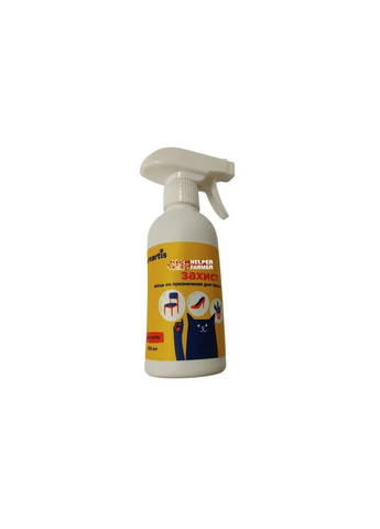 Спрей Smartis (з перцем) для відлякування улюбленця від подряпувань та розгризння меблів та інших предметів домашнього побуту. Переваги Допомагає відучити вихованця псувати зубами та кігтями меблі, взуття, одяг, предмети домашнього вжитку, шпалери, дроти, кімнатні рослини Безпечний для рослин Підходить для будь-яких поверхонь Збереже домашній затишок та цінні речі власників Випускається окремо для котів та Застосування Перед використанням флакон слід інтенсивно збовтати, розпилити розчин з відстані 20-30 см на поверхні, що викликають передбачуваний або постійний інтерес тварини. Повторювати обробку за потреби або кілька разів на тиждень. Після контакту з обробленими поверхнями у тварин може бути природня реакція на гіркий смак, яка проходить самостійно протягом 15-20 хвилин. За потреби дію гіркого смаку нейтралізувати молоком. Принцип дії засобу полягає в тому, що гіркий компонент перцю в поєднанні з ефірними оліями лимону та розмарину відлякують тварин. При потраплянні на рецептори, засіб викликає неприємні відчуття, що виробляє у тварини умовний рефлекс не чіпати оброблені речі та предмети. Склад Вода очищена нанокластерами срібла, екстракт полину, екстракт каєнського перцю, ізопропіловий спирт, полісорбат 20, калій сорбат, ефірна олія лимону, ефірна олія розмарину. Протипоказання Індивідуальна непереносимість компонентів. Уникати потрапляння в очі тварини або людей. Умови зберігання Сухе, темне місце при температурі до 25 °С.