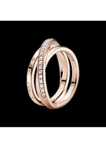 Срібна каблучка потрійна стрічкова з паве Pandora (Пандора) 189057C01 з покриттям 14к золотом • (055-21074) • Матеріал Сплав з покриттям 14K золотом • Проба: МЕТ ALE • Країна виробництва Таїланд • Oригінальна бірка, пломба, гравіювання, проба МЕТ ALE