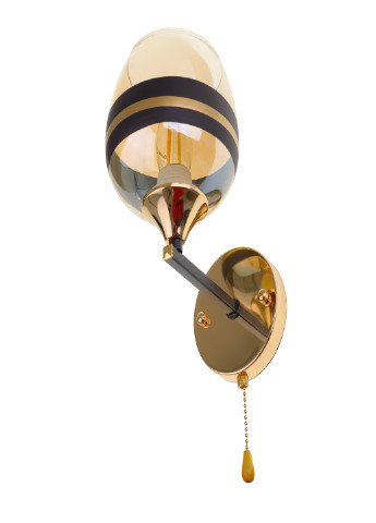 Бра LK-700W / 1 E27 BK + FG настінний світильник додаткового освітлення. Його корпус зроблений з металу, в чорно-золотистої кольоровій гамі. Єдиний круглий плафон виготовлений з прозорого скла з золотистим відтінком, з двох сторін доповнений широкими чорними облямівками. Знизу є вимикач на ланцюжку. Як джерело світла використовується лампа з цоколем Е27 і максимальною потужністю 60 Вт. Це може бути світлодіодна, енергозберігаюча або лампа розжарювання. Бра повинен одночасно елегантний і ефектний дизайн. Воно підійде як локальне підсвічування будинку, в кафе, ресторані, магазині або в номері готелю.