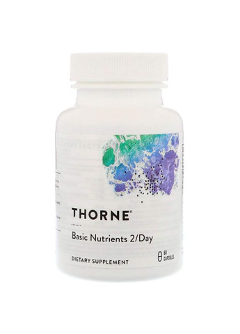 Основні переваги: Basic Nutrients 2/Day, Thorne, 60 капсул Basic Nutrients 2/Day від Thorne – це комплекс вітамінів та мінералів, розроблений для підтримки здоров'я та активності організму склад: Порція: 2 капсули Порцій в упаковці: 30 Дві капсули містять: В одній порції % Від добової потреби Вітаміни (3000 МО з змішаних каротинів і 2000 МО у вигляді пальмітату) 5000 МО 100% Вітамін С (аскорбінова кислота) 250 мг 417% Вітамін D (вітамін D3) 2000 МО 500% Вітамін Е (d-альфа-токоферол кислота сукцинат) 20 МО 67% Вітамін K (200 мкг як вітамін K1 і 200 мкг вітамін К2) 400 мкг 500% Тіамін (тіаміну HCI) 50 мг 3333% Рибофлавін (рибофлавін-5'-фосфат натрію) 12 мг 706% Нікотинова кислота (Niacinamide) 80 мг 400% Вітамін В6 (піридоксаль 5 "Phopsphate) 20 мг 1000% Фолієва кислота (L-5 Methltetrahydrofolate † від L-5 метілтетрагідрофоліевой кислоти, сіль глюкозаміну) 400 мкг 100% Вітамін В12 (Methylcobalamin) 600 мкг 10000% біотин 500 мкг 167% Пантотенова кислота (кальцій пантотенат) 45 мг 450% Кальцій (кальцій бісгліцинат хелат) 30 мг 3% Йод (йодид калію) 75 мкг 50% Магній (магній бісгліцинат хелат) 20 мг 5% Цинк (цинку бісгліцинат хелат) 15 мг 100% Селен (селенометіоніна) 200 мкг 286% Мідь (мідь (II) бісгліцинат хелат) 750 мкг 38% Марганець (марганець (II), бісгліцинат хелат) 3 мг 150% Хром (хром никотинат гліцинатних хелат) 400 мкг 333% Молібден (молібден (II) гліцинатних хелат) 100 мкг 133% d-гамма-токоферол (від токоферолов) 24 мг * Бор (Boroganic гліцин) 2 мг * * Добова потреба не визначена. † Цей продукт використовує L-5-метілтетрагідрофоліевую кислоту, сіль глюкозаміну.