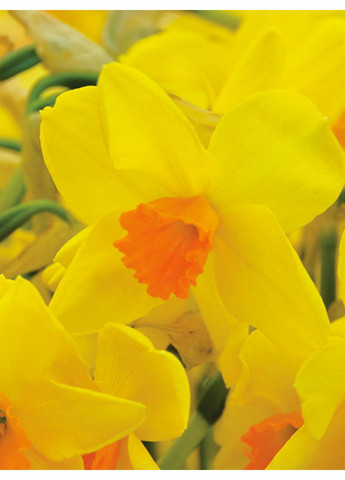 Мініатюрний нарцис Tete a Tete - найпопулярніший сорт в нашому каталозі, що просто зобов’язаний бути у вашій колекції! Це справжня класика серед мініатюрних нарцисів, що зацвітає одразу ж після танення снігу - рання пташка. Сонячно-жовті квіти мають гарний середній розмір, але вони тримаються на відносно коротких квітконосах, що робить їх чарівним вибором для горщикового кольору, чим швидко скористалися професійні садівники горщикових рослин. Завдяки компактності та стабільному цвітінню цей сорт особливо популярний у бордюрних посадках, на альпійських гірках, у контейнерах і навіть на балконах. Він невибагливий, довговічний і надзвичайно декоративний. Це той сорт, який завжди виправдовує очікування: легко садити, просто доглядати, і щороку — море квітів уже на початку весни. Тож якщо ви ще досі вагаєтесь садити цей сорт у своєму саду чи ні - не вагайтеся, а обов’язково висаджуйте! І поговоримо з вами про його красу та витонченість вже наступної весни, коли ви самі переконаєтесь в красі та елегантності цього нарциса. Мініатюрні нарциси - це карликові сорти нарцисів, які відрізняються від звичайних меншими розмірами, як квіток, так і стебел. Зазвичай вони виростають заввишки від 15 до 30 см. Їх часто використовують в альпінаріях, кам'янистих садах, на бордюрах, а також у контейнерах, на балконах та терасах. А як бонус до всього, то вони ще й максимальне невибагливі - і можуть рости навіть там, де інші види здавалося б не виживуть. Бодай один представник з цього виду, але точно має бути у саду кожного садівника! Ідеальні умови для вирощування: вирощування нарцисів, як зрештою й інших цибулькових весняноквітучих рослин, не потребує особливих зусиль, але деякі фактори все ж краще врахувати. По-перше, ми говоримо про вибір місця, ґрунту, правильна посадка та догляд після посадки. Пам’ятайте, що нарциси люблять сонячні ділянки, але можуть прекрасно рости і в умовах напівтіні. Ґрунт повинен бути вологим, суглинним, з достатньою кількістю поживних речовин. Не рекомендується садити нарциси в надто кислий ґрунт, бажано нейтральний або слаболужний. А перед посадкою його бажано підживити компостом або перегноєм, а також додати фосфорні та калійні добрива. Найкращий час для посадки нарцисів - осінь, орієнтовно це вересень-жовтень, але зважайте на погодні умови у своєму регіоні. Глибина посадки залежить від розміру цибулин, зазвичай це в 2-3 рази більше за висоту цибулини. На важких ґрунтах глибину посадки можна зменшити, а на легких - збільшити. Після посадки ґрунт можна замульчувати торфом або листям, щоб зберегти вологу. Особливості догляду після посадки дуже прості. Передовсім пам'ятайте, що нарциси вологолюбні рослини, але не переносять застою води. Поливайте їх регулярно, особливо під час активного росту та цвітіння, але стежте, щоб ґрунт не був перезволожений. Вносьте комплексні мінеральні добрива навесні, під час бутонізації та після цвітіння. А також не забувайте щоразу обрізати відсохлі квітконоси та листя, аби рослинка змогла накопичити поживні речовини для наступного сезону. За правильного догляду, нарциси зможуть тішити вас на одному місці понад 8 років!