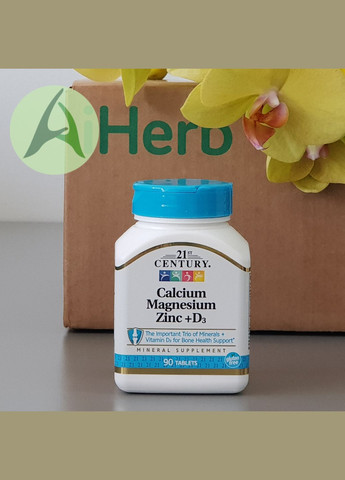 21st Century, кальцій, магній, цинк і вітамін D3, 90 таблеток Опис Важливе тріо мінералів + вітамін D3 для підтримки здоров’я кісток Мінеральні добавки Не містить глютену Продукт пройшов лабораторні випробування Кальцій, магній і цинк, три важливі мінерали + вітамін D3, підтримує здоров’я кісткової, м’язевої й імунної систем. Рекомендації із застосування У якості мінеральної добавки дорослим приймати по три (3) таблетки щодня під час будь-якого прийому їжі або за рекомендацією лікаря. Не слід перевищувати рекомендовану дозу. Окремі результати можуть відрізнятися. Інші інгредієнти Целюлоза, кроскармелоза натрію, мальтодекстрин. Містить < 2 % наступних речовин: BHA, BHT, желатин, силікат кальцію, стеарату магнію, ПЕГ, полівінілового спирту, діоксиду кремнію, крохмаль, стеаринова кислота, сахароза, тальк, рослинна олія, вода. Без додавання дріжджів, або штучних ароматизаторів. Попередження Перед використанням проконсультуйтеся з медичним працівником, якщо ви вагітні, годуєте груддю, приймаєте препарати, маєте захворювання або плануєте медичну процедуру. Припиніть використання та зверніться до лікаря у разі виникнення побічних реакцій. Зберігати в недоступному для дітей місці. Не використовуйте, якщо упаковка відкрита або захисна плівка пошкоджена. Зберігати за кімнатної температури. Поживна цінність Розмір порції: 3 таблетки Порцій в упаковці: 30 Кількість в 1 порції % від добової норми Вітамін D3 (у вигляді холекальциферолу) 10 мкг (400 МО) 50 % Кальцій (у вигляді карбонату кальцію) 1000 мг 77 % Магній (у вигляді оксиду магнію) 400 мг 95 % Цинк (у вигляді оксиду цинку) 15 мг 136 %