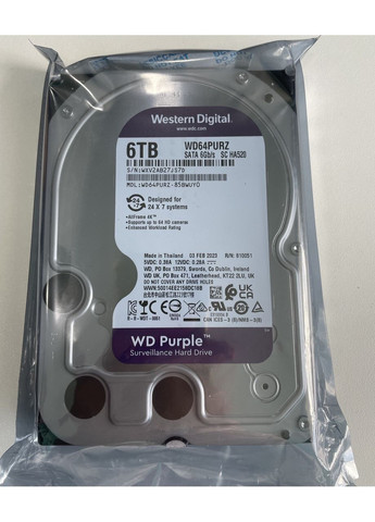Диски WD Purple спеціально розроблені для цілодобової експлуатації в системах безпеки високої чіткості. При робочому навантаженні до 180 ТБ/рік і підтримці до 64 камер накопичувачі WD Purple є оптимальним вибором для систем спостереження. У накопичувачах WD Purple також реалізована унікальна технологія WD AllFrame 4K, завдяки якій ви можете упевнено створити систему безпеки, що повністю відповідає потребам вашого бізнесу. Кращі в галузі накопичувачі. Системи відеоспостереження, в яких ви можете бути упевнені. WD - світовий лідер у виробництві жорстких дисків. Жорсткі диски WD Purple спеціально розроблені для цілодобової роботи при високих температурах в системах цілодобового відеоспостереження, так що вони забезпечують надійне і якісне відтворення відео в найпотрібніший момент. Незалежно від того, чи треба вам захистити життя своїх коханих людей або контролювати своє підприємство, WD Purple забезпечують продуктивність, якої ви можете довіряти. Унікальна технологія WD AllFrame 4K У усіх жорстких дисках WD Purple використовується технологія AllFrame 4K, яка покращує потокову передачу ATA. Застосування цієї технології дозволяє зменшити втрату кадрів, поліпшити відтворення і збільшити кількість дискових відсіків, підтримуваних мережевим відеореєстратором. Підвищене робоче навантаження При робочому навантаженні до 180 ТБ/рік - в три рази більше, ніж у настільних дисків - WD Purple спроектований для задоволення унікальних вимог сучасних систем відеоспостереження DVR і NVR. Ніщо не вислизне від уваги Жорсткі диски WD Purple оптимізовані для підтримки до 64 камер. Завдяки цим можливостям ви при необхідності зможете розширювати і оновлювати свою систему забезпечення безпеки надалі. Сумісність з великою кількістю пристроїв. Зручна інтеграція. Жорсткі диски WD Purple робляться з урахуванням необхідності забезпечити їх сумісність з іншим обладнанням, так що ви зможете швидко і просто розширювати місткість своєї системи відеоспостереження. Завдяки підтримці великої кількості кращих в галузі корпусів і мікросхем, ви обов"язково знайдете ту конфігурацію цифрового відеореєстратора, яка стане ідеальною для вас. Менше енергоспоживання. Більше ефективність. Мале енергоспоживання абсолютно потрібне для систем відеоспостереження, цілодобово працюючих при високих температурах. Завдяки унікальній технології IntelliSeek диски WD Purple здатні обчислювати оптимальну швидкість підведення голівки. Це забезпечує низьке енергоспоживання і зводить до мінімуму шум і вібрацію.