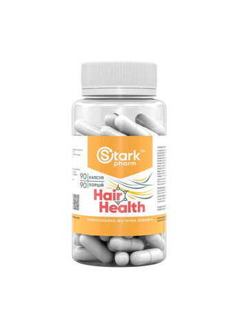 Добавка для волосся Hair Health Stark Pharm, 90 капсул Hair Health Stark Pharm — це комплексна дієтична добавка для підтримки здоров'я волосся, шкіри голови та зміцнення нігтів. Спеціально підібраний склад з вітамінами, мінералами та амінокислотами сприяє стимуляції росту волосся, запобігає їх ламкості та допомагає відновити природний блиск і густоту. Ключові переваги: Стимуляція росту волосся: біотин, цинк і вітамін С активізують процеси оновлення клітин шкіри голови. Запобігання випадінню волосся: залізо, фолієва кислота та інші поживні речовини зміцнюють волосяні фолікули. Покращення структури волосся: амінокислоти забезпечують живлення і відновлення волосяного стрижня. Підтримка здоров'я нігтів та шкіри: вітаміни групи B сприяють загальному оздоровленню зовнішнього вигляду. Рекомендації щодо застосування: Приймати по 1-2 капсули на день під час їжі або за рекомендацією лікаря. Для досягнення максимального ефекту рекомендується тривале застосування від 3 місяців. Протипоказання: Не рекомендується особам з індивідуальною непереносимістю компонентів. Перед початком прийому проконсультуйтеся з лікарем. Умови зберігання: Зберігати в сухому, прохолодному місці при температурі до 25°C. Тримати в недоступному для дітей місці. Де придбати: Придбати Hair Health Stark Pharm можна виключно в інтернет-магазині Djini. Переваги покупки в нашому магазині: Оригінальна продукція з офіційною сертифікацією. Швидка доставка в усі регіони України. Консультації щодо вибору комплексів для краси і здоров'я. Зміцнюйте своє волосся та нігті з Hair Health Stark Pharm — природна краса починається зсередини!