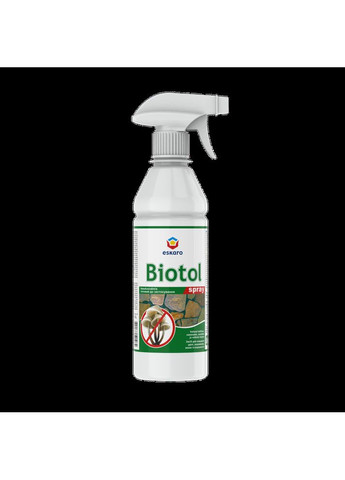Властивості Ефективний засіб для профілактики та знищення цвілі, лишайників, мохів та водоростей. Готовий до використання. Зручне нанесення за допомогою розпилювача.. Знищує цвіль, попереджає появу цвілі. Не містить сполуки ртуті і інших важких металів. Без запаху. Водорозріджуваний. Не перешкоджає природному диханню поверхонь. Призначення Застосовується в приміщеннях з підвищеною вологістю: ванні кімнати, кухні, пральні, а також застосовується для обробки фасадів і віконних рам, цоколів будинків, карнизів, балконів, шиферних і черепичних дахів, архітектурних і меморіальних пам'ятників, огорож, під час догляду й реставрації. Для внутрішніх і зовнішніх робіт. Типи поверхонь для нанесення Кам'яні, бетонні, оштукатурені, цегельні й інші пористі поверхні, а також пофарбовані, керамічні й дерев'яні поверхні. Підготовка поверхні Поверхня має бути сухою, ретельно очищеною від неміцного матеріалу, який обсипається і відшаровується, спор мікроорганізмів, бруду і пилу. Поверхні, рясно покриті розростаннями мікрофлори, що заважає проникненню дезінфікуючого засобу до поверхні, перед обробкою рекомендуємо обережно, без використання води, очистити шкребком, щіткою тощо, намагаючись не допускати зараження чистих, не уражених ділянок поверхні. За необхідності можливо використовувати піскоструминне очищення і миття під тиском. Використання Готовий до використання. Перед використанням перемішати. Засіб рясно розпорошувати (або нанести пензлем або губкою) на поверхню, уражену мікроорганізмами за температури вище +5ºС. Під час нанесення слід уникати потрапляння засобу на розташовані поруч предмети. Якщо поблизу знаходяться рослини, квіти, городні культури, трава та кущі, їх слід закрити поліетиленовою плівкою. Через 1-2 дня (при зміні кольору розростань мікрофлори) поверхню ретельно очистити шкребком, твердою щіткою або губкою. Для профілактики повторного виникнення біологічних забруднень поверхню після механічного очищення обробити засобом Biotol Spray ще раз. Робочі інструменти Розпилювач, пензель, губка. Очищення інструментів Після закінчення робіт промити водою з милом. Склад Четвертинні амонієві солі, добавки, вода. Колір Безкольоровий, прозорий. Витрата Упаковки (0,5л) досить для обробки 2-4 м² поверхні. Час висихання Подальшу обробку поверхні (ґрунтування та фарбування) проводити після його висихання. Перед фарбуванням або шпаклюванням оброблена поверхня має бути просушена не менше доби за нормальних умов. Оброблена деревина повинна бути просушена й відповідати рекомендаціям з вологості деревини для подальшої обробки лакофарбовими матеріалами.