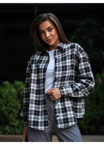 Сорочка виготовлена з фланелевої тканини, яка має гладку фактуру на дотик. Тканина має мінімальну розтяжність, враховуйте це під час підбору розміру. Завдяки своєму оверсайз фасону — гарно сідає по фігурі. Сорочка з довгими рукавами на манжетах, які застібаються на ґудзики. Плечовий шов спущений, що створює вільний силует. Сорочка має широкий відкладний комір, накладну кишеню на грудях та подовжену спинку, створюючи подовжений силует. Застібається на рядок ґудзиків. Має чудовий вигляд самостійно або з футболкою, чи як верхній шар.