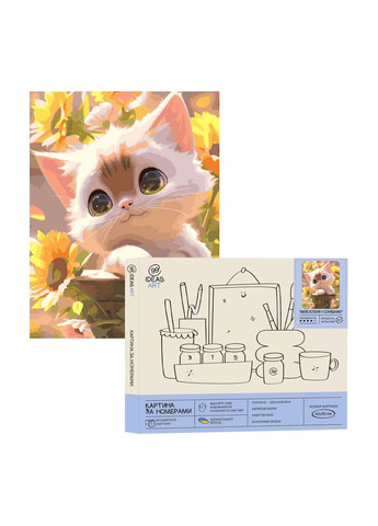 Картина за номерами Brushme Грайливе кошенятко – це унікальний шедевр з колекції картин Brushme. В набір входить: бавовняне полотно на дерев'яному підрамнику з нанесеною пронумерованою схемою майбутньої картини; 3 пензлики різної товщини; акрилові пронумеровані фарби; кріплення до стіни для готової картини. Рекомендовано для дітей від 10-ти років.