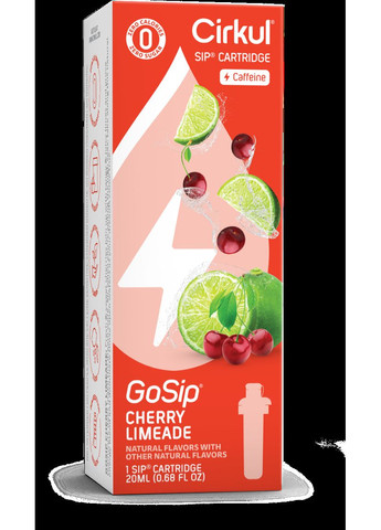 Картридж для Cirkul Cherry Limeade – Яскраве поєднання вишні та лайма з кофеїновим зарядом! Cherry Limeade з серії GoSip – це вибуховий мікс солодкої вишні та цитрусового лайма, доповнений кофеїном для енергійного старту. Смак, який бадьорить, освіжає і залишає приємний післясмак. • Проблема: Хочеться більше енергії, але без енергетиків і цукру? • Рішення: Cherry Limeade – це смачне та безпечне джерело заряду для продуктивного дня. Чому варто обрати Cherry Limeade • Яскраве поєднання вишні та лайма • Містить натуральний кофеїн • Без цукру та штучних підсолоджувачів • Збагачений вітамінами групи B • Сумісний з усіма пляшками Cirkul Як працює Встав картридж у пляшку Cirkul, налий воду, обери бажаний рівень смаку – і насолоджуйся зарядом енергії. Пий більше води – смачно, бадьоро і без зайвого.
