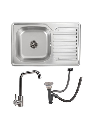 Комплект кухонної мийки Valeso 7850 та змішувача NS02A Кухонна мийка Valeso 7850 — це оптимальне рішення для кухні середніх розмірів. Лаконічний дизайн прямокутної форми добре поєднується з різними інтер'єрами кухні, а містка чаша забезпечує зручність повсякденного використання. Мийка виготовлена з екологічно чистого матеріалу — нержавіючої сталі SUS 201. Цей матеріал забезпечує стійкість до перепадів температур і відсутність відколів при використанні. Поверхня металевої кухонної мийки Valeso не затримує плями, за нею легко доглядати, на ній не залишається слідів від впливу мийних засобів. Переваги мийки Valeso 7850: Доступна ціна Невелика вага Простота монтажу Не потребує спеціального догляду Мийка має глибоку чашу (180 мм), в якій можна мити габаритний посуд. Змішувач VALESO NS02A — це ідеальне поєднання сучасного дизайну, високої якості та функціональності. Завдяки стильному зовнішньому вигляду та міцним матеріалам він гармонійно впишеться в будь-який кухонний інтер'єр. Характеристики: Матеріал: нержавіюча сталь SUS304, що відрізняється міцністю та довговічністю. Висота змішувача: 280 мм — оптимальне рішення для комфортного використання. Довжина виливу: 155 мм — забезпечує рівномірний потік води. Висота від основи до носика: 200 мм — дозволяє легко наповнювати високі ємності. Картридж: 35 мм — гарантує плавне та точне регулювання температури та потоку води.