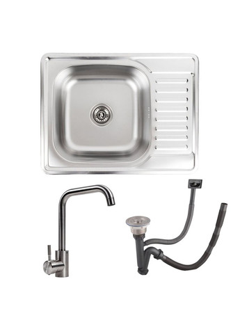 Комплект "Valeso 6050": кухонна мийка та змішувач Мийка кухонна Valeso 6050 — це оптимальне рішення для кухні невеликих та середніх розмірів. Її лаконічний прямокутний дизайн чудово вписується в різні інтер’єри, а містка чаша глибиною 180 мм забезпечує зручне повсякденне використання. Мийка виготовлена з нержавіючої сталі SUS 201, яка стійка до перепадів температур і не схильна до сколів. Поверхня легко чиститься, не затримує плями та не залишає слідів від мийних засобів. Особливості мийки Valeso 6050: Доступна вартість Невелика вага Простий монтаж Не потребує спеціального догляду Змішувач Valeso NS02A — це ідеальне доповнення до мийки, що поєднує в собі сучасний дизайн, високу якість і функціональність. Виготовлений з міцної нержавіючої сталі SUS304, він гармонійно вписується в будь-який кухонний інтер’єр. Характеристики змішувача Valeso NS02A: Висота: 280 мм Довжина виливу: 155 мм Висота від основи до носика: 200 мм Картридж: 35 мм — гарантує плавне регулювання температури і потоку води.
