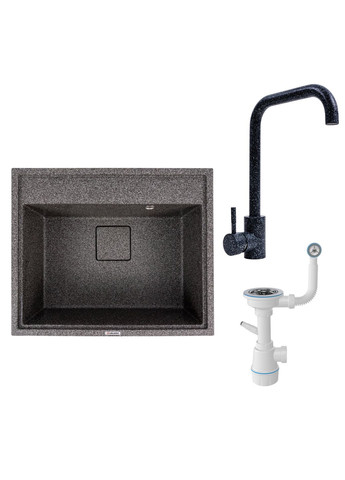 КОМПЛЕКТ: Мийка гранітна 6050 SHERLIT VALESO + Змішувач NS02A + Сифон (Графіт) Цей комплект — це ідеальне рішення для сучасної кухні, що поєднує елегантність, практичність та високу довговічність. Він включає всі необхідні елементи для створення функціональної та стильної робочої зони. Гранітна мийка VALESO 6050 SHERLIT Дизайн: Класична мийка з матовою поверхнею у глибокому відтінку графіт. Розмір виробу (ШхГхВ): 600×500×200 мм, що робить її зручною для кухонь середнього розміру. Розмір чаші (ШхГхВ): 583×363×200 мм, забезпечує достатньо місця для комфортного миття посуду та мінімізує розбризкування води. Матеріал: Виготовлена з граніту, що гарантує високу стійкість до подряпин, ударів, високих температур та агресивних хімічних речовин. Непориста поверхня легко очищається та не вбирає запахи. Гарантія: 10 років. Кухонний змішувач VALESO NS02A Дизайн: Стильний змішувач у кольорі графіт, що гармонійно поєднується з мийкою. Висота змішувача: 320 мм. Довжина виливу: 175 мм. Висота від основи до носика: 250 мм. Картридж: 35 мм, забезпечує надійну роботу. Матеріал: Виготовлений з високоякісної нержавіючої сталі SUS304, стійкої до корозії. Гарантія: 1 рік (12 місяців). Сифон одинарний для граніту NOVA 1041 Надійний одинарний сифон для підключення гранітної мийки, що входить до комплекту для зручного та швидкого монтажу. Цей комплект забезпечить вам не лише функціональність, а й стане справжньою окрасою вашої кухні завдяки елегантному дизайну та високій якості виконання.
