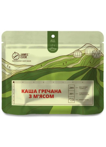 Гречана каша з м’ясом — класика похідного раціону. Містить великий вміст вуглеводів, що наповнять вас необхідною кількістю енергії. Для приготування ми використовуємо відбірну гречану крупу. Жодних пластівців. Чим ж корисна гречана каша? Гречка збагачена повільними (складними) вуглеводами, які тривалий час розщеплюються в організмі, створюючи відчуття ситості. А ще у білку гречаної каші містяться такі амінокислоти, як метіонін і лізин (вони дуже швидко засвоюються організмом). Для приготування використовуються лише натуральні компоненти. Ніяких підсилювачів смаку, чи барвників. Страва виготовлена шляхом висушування готових продуктів. Саме тому, смак її максимально близький до тієї, що ви готуєте вдома. Призначення: місто, подорожі, відпочинок на природі Спосіб приготування: Залити страву окропом до позначки 2 на внутрішній лійці, перемішати, та зачекати протягом 7-8 хвилин Технічні характеристики: Склад: гречана крупа 84%, м’ясо (яловичина) 10%, сіль, морква, цибуля, часник, коріандр, перець мелений Поживна (харчова) цінність на 100 г: білки 22,3 г, жири 8,2 г, вуглеводи 72,2 г Енергетична цінність (калорійність): на 100 г – 434 Ккал / 1817 КДж, порції – 391 Ккал / 1636 КДж Вага: сухої страви – 90 г; готової — 289 г Термін придатності: 24 місяці