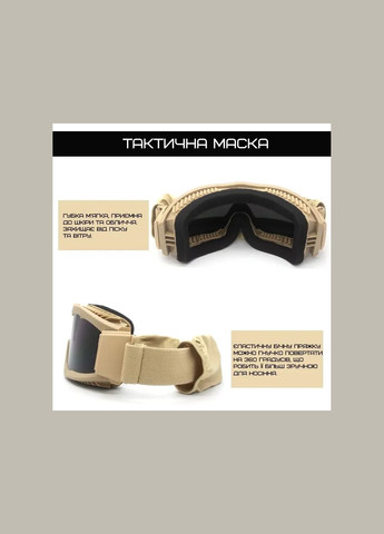 Тактична захисна маска Daisy з лінзами товщиною 3 мм (сертифікація ANSI Z87.1) Тактична маска Daisy — це професійне рішення для захисту очей у бойових, польових або тренувальних умовах. Модель сертифікована за стандартом ANSI Z87.1, що гарантує її здатність витримувати пряме влучення твердих частинок на швидкості до 100 м/с. Завдяки вигнутим лінзам товщиною 3 мм маска забезпечує широкий кут огляду, високу ударостійкість і надійний захист за будь-якої погоди. 🔧 Основні характеристики: Матеріал оправи: міцний полікарбонат Лінзи: ударостійкий полікарбонат, товщина 3 мм Сумісна з касками, шоломами, балаклавами Ергономічна форма — щільне прилягання до обличчя Вентиляційні отвори зверху та знизу Вставки проти завихрення повітря Внутрішній шар з поролону — захист від пилу та вологи Гумовий регульований ремінь із фіксацією від мимовільного зняття Лінзи в комплекті: прозора, темна (чорна), жовта 🎯 Призначення кожної лінзи: ⬛ Темна (чорна) лінза ✔ Захищає очі від яскравого сонячного світла ✔ Усуває відблиски від води, скла, снігу, асфальту ✔ Підходить для стрільби, водіння, бойових дій у сонячну погоду 🟡 Жовта лінза ✔ Покращує контрастність і видимість у тумані, сутінках, похмуру погоду ✔ Ідеальна для стрільби в умовах слабкого освітлення ✔ Знижує втому очей при тривалому носінні ⚪ Прозора лінза ✔ Базовий захист від пилу, вітру, дрібних частинок та уламків ✔ Підходить для нічного використання або роботи в приміщеннях ✔ Не затемнює та не спотворює кольори 📦 Комплектація: Маска з встановленою лінзою 2 змінні лінзи Гумовий регульований ремінь Захисний тканинний рукав Тканинна сумка-чохол 🛡 Сертифікація ANSI Z87.1 Маска відповідає вимогам американського стандарту ANSI Z87.1. Лінзи витримують удари сталевих кульок діаметром 6,4 мм при швидкості до 100 м/с, гарантуючи високий рівень захисту очей навіть у критичних ситуаціях. ✅ Рекомендовано для: Страйкболу, стрільби, полювання Військових тренувань Роботи у пилу, на будівництві, у зоні ризику розльоту уламків Тактичних ігор, охоронних структур