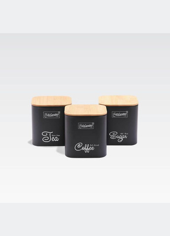 Набір металевих ємностей (чай, кава, цукор) Maestro 3 шт (MR-1775-3S-BLACK) Комплектація Ємність для цукру (розмір: 11,5 х 11,5 х 12 см) Ємність для кави (розмір: 11,5 х 11,5 х 12 см) Ємність для чаю (розмір: 11,5 х 11,5 х 12 см) Характеристики: Корпус металевий Бамбукова кришка Сучасний елегантний дизайн Зручність і простота у використанні Набір металевих ємностей Maestro MR-1775-3S-BLACK містить три контейнери для чаю, кави та цукру. Вони виготовлені з міцного металу з антикорозійним покриттям для тривалого використання. Ємності обладнані щільно прилеглими бамбуковими кришками, які надійно захищають вміст від вологи та сторонніх запахів. Чорний колір і лаконічний дизайн надають набору сучасного та стильного вигляду, що підходить для будь-якого кухонного інтер'єру. Змініть вашу кухню з набором металевих ємностей Maestro MR-1775-3S-BLACK, який поєднує стиль і практичність. Цей вишуканий комплект із трьох контейнерів — для чаю, кави та цукру — зроблений в елегантному чорному кольорі, який додасть сучасного акценту до будь-якого інтер'єру. Виготовлені з міцного металу та обладнані бамбуковими кришками, ці ємності не тільки надійно збережуть свіжість і аромат ваших улюблених продуктів, але й стануть прикрасою вашої кухні. Кожна деталь від витончених кришок до універсального дизайну створена для зручності та стилю. Зробіть вашу кухню витонченішою та функціональнішою з цим стильним набором від Maestro!
