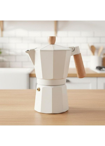 Гейзерна кавоварка об’ємом 300 мл — чудовий вибір для тих, хто любить насичену каву та хоче приготувати одразу кілька порцій. Алюмінієвий корпус нагрівається швидко й рівномірно, забезпечуючи стабільний смак і аромат. Кремовий колір додає кавоварці стильності та сучасного вигляду. Дерев’яна ручка та кнопка на кришці не нагріваються, тому користуватися кавоваркою зручно й безпечно. Об’єм 300 мл підходить для 6 чашок еспресо або 2–3 порцій американо. Модель сумісна з газовими та електричними плитами, а також підходить для приготування на відкритому вогні. Не працює на індукції. Вдалий варіант для дому, офісу або подарунка поціновувачу кави. Характеристики Тип: гейзерна кавоварка Матеріал: алюміній з покриттям Колір: кремовий Об’єм: 300 мл (6 чашок) Висота 20 см Розміри: формат 6-cup Упаковка: фірмова коробка Delio Країна виробництва: Китай Підходить для газових плит: так Підходить для електричних плит: так Підходить для індукції: ні Підходить для відкритого вогню: так Артикул: GT-10066