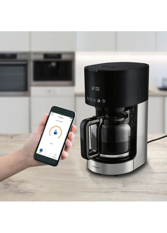 Розумна кавоварка SILVERCREST із потужністю 900 Вт дозволяє приготувати до 10 чашок кави, забезпечуючи максимальний комфорт завдяки інтеграції з додатком Lidl Home через Wi-Fi. Користувач може керувати пристроєм через сенсорний екран або смартфон, налаштовувати час приготування та обирати бажану міцність напою. Резервуар для води оснащений індикатором рівня, а знімний тримач фільтра має функцію захисту від протікань. Антипригарна підігрівальна пластина підтримує температуру готової кави. У комплекті скляний кавник, сіточка-фільтр і мірна ложка. Розмір: 23,5 x 16,8 x 33,1 см. Виробник Німеччина