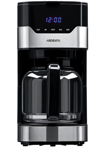 Кавоварка Ardesto YCM-D1200 - це високоякісний прилад для приготування кави з численними зручними функціями та стильним дизайном, що робить її чудовим вибором для будь-якого шанувальника кави. Переваги кавоварки Ardesto YCM-D1200: Ardesto YCM-D1200 має корпус, виготовлений із міцного глянсового чорного пластику зі вставками зі шліфованої неіржавкої сталі. Це не тільки надає їй сучасного та елегантного вигляду, але також робить її стійкою до зношування. Кавоварка оснащена зручною панеллю керування, на якій є вбудований дисплей з підсвічуванням синього кольору. Дисплей включає годинник і таймер приготування, що дозволяє вам налаштовувати час приготування своєї улюбленої кави. Внутрішній резервуар для води розрахований на 1,2 л. Він оснащений індикатором рівня, що допомагає контролювати кількість води в кавоварці. Кавоварка має контейнер для зерен та меленої кави, який також поєднаний з фільтром. Ця кавомолка розрахована на 60 г зерен, що дозволяє вам приготувати свіжу каву за вашими вподобаннями. Ardesto YCM-D1200 постачається зі скляним кавником об'ємом 1 л, який має зручну теплоізоляційну ручку, що дозволяє зручно наливати каву та уникнути опіків. Кавоварка обладнана знімним фільтром, виготовленим із пластику з металевою сіткою, що допомагає забезпечити чистоту і чудовий смак кави. Для підтримки температури напою після приготування, в ніші для кавника розташований нагрівальний диск. Ця функція забезпечує, що ваша кава залишиться гарячою після приготування. Кавоварка автоматично вимикається через 40 хвилин після приготування, що забезпечує безпеку та економію енергії. Функція "Крапля-стоп" дозволяє призупиняти процес приготування кави, щоб ви змогли налити собі чашку, навіть якщо приготування ще не завершилося. Кавоварка має вбудований захист від перегрівання. Основа кавоварки обладнана нековзним покриттям, що забезпечує її стабільність під час роботи.