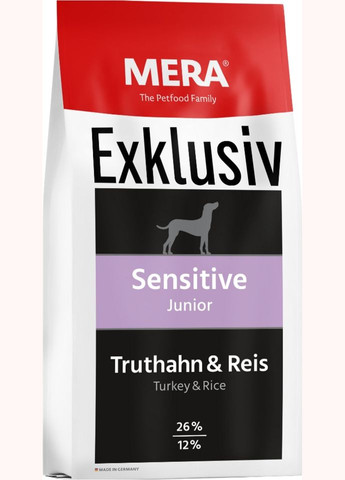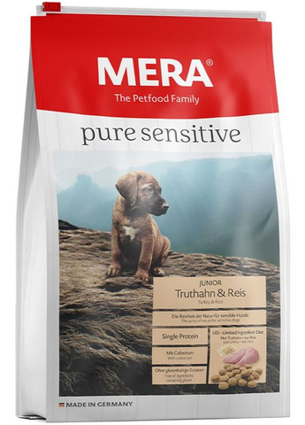 MERA pure sensitive Junior Truthahn & Reis – повноцінний сухий корм для юніорів, рецепт індички та рису. MERA pure sensitive Junior Truthahn & Reis з індичкою та рисом особливо смачним повнорационним кормом для юніорів усіх порід з непереносимістю чи проблемами харчування. • Сухий корм для щоденних потреб. • 1:1. Одне джерело тваринного білка та одне джерело вуглеводів • Рецепт без інгредієнтів, що містять глютен • LID – дієта з обмеженим вмістом інгредієнтів • Висока прийнятність Сухий корм Pure Sensitive Junior з індичкою та рисом особливо підходить для юніорів. Завдяки легкозасвоюваній індичці як єдиному джерелу тваринного білка і рису, що легко засвоюється, ми не використовуємо в рецепті інгредієнти, що містять глютен. Високозасвоюваний рецепт розроблений відповідно до принципу дієти з обмеженим вмістом інгредієнтів (LID) та його склад зосереджений на основних інгредієнтах для чутливих собак. Це зводить до мінімуму ризик харчової непереносимості та алергії. Ми свідомо уникали рецепту: екзотичних джерел м'яса, барвників, ароматизаторів і консервантів, генетично модифікованих інгредієнтів, цукру, сої, вітаміну К3. Рис (49%), білок індички (23%, зневоднений), рисовий білок, жир птиці, яблучні вичавки (2.8%), гідролізат білка птиці, пивні дріжджі (2.5%, сухі), бурякова м'якоть (2.5%), насіння льону (2%), коров'яче молозиво (0.5%, без казеїну), хлорид натрію, лососевий жир (0.4%), соняшникова олія (0.2%), клітинні стінки дріжджів (багаті манан-олігосахаридами та бета), хлорид калію, інун (0.1%), борошно з морських водоростей (багата ДГК), глюкозамін із тканин тваринного походження (0.02%), сульфат хондроїтину (0.01%). Аналітичний склад: білки 26%, жири 12%, сира клітковина 2,5%, сира зола 7,6%, кальцій 1,4%, фосфор 0,95%, натрій 0,35%. Харчові добавки: вітамін A 15 000 МО, вітамін D3 1600 МО, вітамін E 400 мг, вітамін C 300 мг, мідь (у вигляді міді (II) сульфату, пентагідрат) 12,5 мг, цинк (сульфат цинку, моногідрат) 100 мг , цинк (гліцин-хелат цинку, гідрит (твердий)) 40 мг, залізо (сульфат заліза (II), моногідрат) 250 мг, марганець (сульфат марганцю (II), моногідрат) 35 мг, йод (йод кальцію, безводний) 2 0,0 мг, селен (селеніт натрію) 0,4 мг. Технологічні добавки: антиоксиданти. Рекомендації щодо годування MERA essential зазвичай згодовують у сухому вигляді. Переконайтеся, що ваш собака завжди є доступ до свіжої води. Рекомендовані значення на добу є орієнтовними, які необхідно коригувати залежно від зовнішніх впливів та настрою собаки. Будь ласка, розгляньте наведені рекомендації щодо годування тільки як посібник зі збалансованого раціону, що ґрунтується на потребах вашого собаки. Ця інформація була розрахована відповідно до останніх наукових даних, але повинна бути адаптована до індивідуальних потреб вашого собаки. Тому що одне число не може відобразити всі індивідуальні відмінності та умови, такі як порода, вік та розмір собаки, результати вправ, вплив довкілля (погода, літо, зима). Зберігання Будь ласка, зберігайте всі продукти MERA у прохолодному та сухому місці, щоб забезпечити якість наших продуктів протягом усього терміну їхньої придатності. Енергетична цінність Енергія, що конвертується (за даними FEDIAF) 15.35 МДж/кг. Рекомендовані значення є орієнтовними значеннями на добу, які необхідно коригувати залежно від зовнішніх впливів та настрою собаки. Упаковка: 1 кг, 4 кг, 12,5 кг. Зроблено в Німеччині. Виробник: MERA Tiernahrung GmbH.