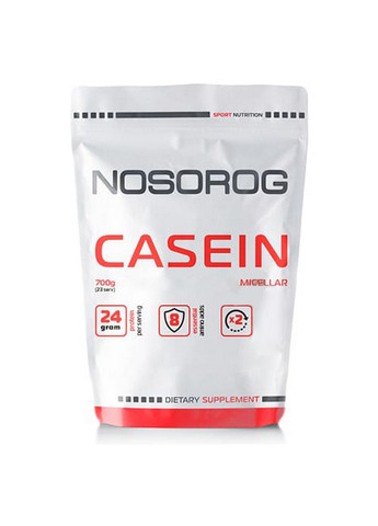 Відправка протягом 2-4 робочих днів. Серед протеїнових добавок казеїн має велику популярність. Nosorog Micellar Casein – це харчова добавка, що містить 80% міцелярного казеїну. Казеїн одержують із коров `ячого молока: якщо розглядати всі білки, що містяться в молоці, то на казеїн припадає 80%, а на сироватку – не більше 20%. Отримати казеїн із молока можна шляхом його повалення. Існує дві методики виділення цього білка: Нагрівання молока з подальшою обробкою кислотами – в результаті одержують казеїнат кальцію, кінцевий продукт не дуже добре засвоюється організмом людини. Мікрофільтрація – в результаті ми отримуємо міцелярний казеїн. Як приймати: Для використання потрібно змішати 30 г добавки із 200-350 мл рідини. Приймати коктейль можна від 1 до 3 разів на день. Вміст елементів у 1й порції 30 грам Калорії 105 ккал Жири 1 г - насичені 0,5 г Холестерин 15 мг Натрій 190 мг Вуглеводи 3 г - харчові волокна 1 г - цукор 1 г Білок 24 г Інгредієнти міцелярний казеїн, ароматизатор, КМЦ, ацесульфам калію, сукралоза Виробник: Nosorog; Форма випуску: Порошок; Вага,г: 700; Кількість порцій, шт: 23; Зміст порції: 30 грам; Вигляд: Міцелярні казеїни; Зміст білка,%: 80; Вміст вуглеводів,%: 10; Вигляд за походженням: Тварини; Принцип дії: Довго засвоюваний; Вміст вуглеводів в 100 г: Низковуглеводні; Пол: Жіночий, Чоловічий; Вікова категорія: Дорослі; Країна виробника: Україна; Призначення: Для набору м'язової маси, Для загального відновлення, Для підвищення витривалості; Смак: Ваніль