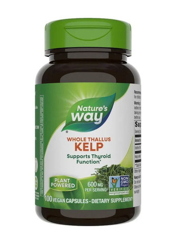 Ламінарія Kelp Whole Thallus Nature's Way 600 мг 180 веганських капсул — це натуральна добавка, створена для підтримання здоров'я щитоподібної залози та загального стану організму. Склад кожної капсули містить 600 мг ламінарії, багатої йодом та іншими важливими мінералами. Йод, що міститься в ламінарії, відіграє ключову роль у підтримці нормальної функції щитовидної залози, допомагаючи регулювати обмін речовин і рівень енергії. Регулярне споживання ламінарії сприяє нормалізації гормонального балансу, що є важливим аспектом для підтримки загального стану здоров'я. Щитоподібна залоза регулює безліч метаболічних процесів в організмі, і нестача йоду може призвести до порушення її функції. Це може проявлятися у вигляді втоми, погіршення когнітивних функцій і навіть проблем із вагою. Ламінарія від Nature's Way допомагає запобігти цим проблемам, забезпечуючи необхідний рівень йоду. Крім йоду, ламінарія містить безліч інших корисних елементів, таких як кальцій, магній і калій, які підтримують здоров'я кісток, серцево-судинної системи і нервової системи. Ці мінерали сприяють зміцненню кісткової тканини, нормалізації серцевого ритму і поліпшенню передачі нервових імпульсів. Антиоксидантні властивості ламінарії захищають клітини від ушкоджень, спричинених вільними радикалами. Це допомагає сповільнити процеси старіння та зменшити ризик розвитку хронічних захворювань. Антиоксиданти нейтралізують вільні радикали, захищаючи клітини від окисного стресу, що особливо важливо в умовах сучасного способу життя з високим рівнем забруднення довкілля та стресів. Ламінарія також відома своїми детоксикаційними властивостями. Вона сприяє виведенню з організму важких металів та інших токсинів, допомагаючи очищати печінку і покращувати загальний стан організму. Детоксикація організму є важливим процесом для підтримання здоров'я та запобігання різним захворюванням. Очищення організму від токсинів допомагає поліпшити обмін речовин, зміцнити імунну систему і підвищити загальний тонус. Крім того, ламінарія сприяє поліпшенню стану шкіри. Регулярне вживання цієї добавки допомагає зробити шкіру пружнішою і здоровішою, завдяки її здатності покращувати мікроциркуляцію і забезпечувати клітини необхідними поживними речовинами. Ламінарія також може допомогти зменшити запальні процеси на шкірі, що робить її корисною для людей зі шкірними проблемами, такими як акне або екзема. Для тих, хто стежить за своєю вагою, ламінарія може бути корисним доповненням до раціону. Вона допомагає прискорити метаболізм і сприяє спалюванню жирів, завдяки високому вмісту йоду та інших мінералів, які стимулюють обмін речовин. Ламінарія Kelp Whole Thallus Nature's Way 600 мг 180 веганських капсул — це безпечний і ефективний спосіб підтримувати здоров'я щитовидної залози, покращувати обмін речовин і захищати організм від шкідливих впливів. Регулярне вживання цієї добавки допоможе вам підтримувати високий рівень енергії, поліпшити когнітивні функції та зміцнити загальний стан здоров'я. Рекомендації із застосування Приймати по 1 капсулі на день. Не слід перевищувати рекомендовану дозу. Склад Розмір порції: 1 капсула Порцій в упаковці: 180 Кількість в 1 порції % від добової норми Йод 270 мкг 180 % Натрій 35 мг 2 % Бурі водорості (таллом) 600 мг ** ** Добову норму не визначено. Додаткові інгредієнти: капсула росл
