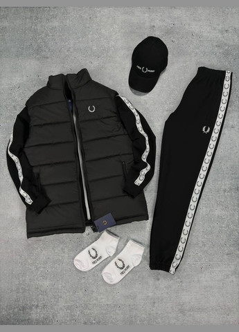 Набір 7в1 Fred Perry лампас: світшот-штани-футболка-шорти-кепка- 2 пари шкарпеток Колір світшот: білий, чорний Колір штани: чорний Колір футболка: чорний, білий Колір шорти: чорні Сезон: Весна/Літо/Осінь Матеріал костюм, шорти: Турецька двухнитка Матеріал футболка: 100% бавовна Розмір: S, M, L, XL, XXL Модель: унісекс ☝🏻 - Логотипи вишивка - Кишені на блискавках - Лампас вишитий (не принт)