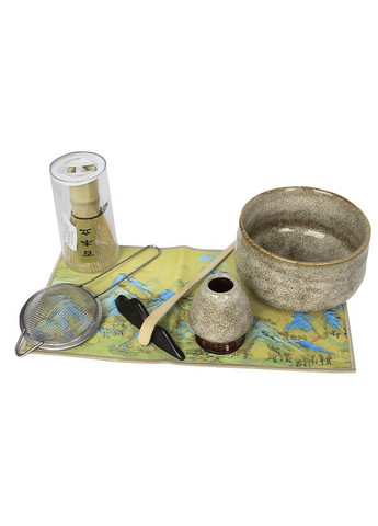 Набір для приготування чаю матча Пропонуємо вишуканий комплект для приготування традиційного японського чаю матча, що складається з 7 предметів. Він включає базові предмети. З цим набором можна готувати чай будь-де – вдома, в офісі, на виїзних заходах. І процес буде виглядати дуже колоритно та натхненно. Придивіться як стильно виглядають сірі керамічні ємності та бамбуковий вінчик й ложка. З ними легко створити необхідну атмосферу та настрій. Матча – це японський зелений чай, змелений у порошок. Він має насичений смак умамі, яскравий зелений колір і високу концентрацію антиоксидантів. З нашим набором можна готувати чай у класичний спосіб. Просіяти чай через сито, щоб відібрати грудочки. Додати трошки води та ретельно перемішати вінчиком (часеном). Додати решту води та збити вінчиком до утворення піни. Також можна приготувати густий чай. Замість збивання, розмішуйте повільно, щоб отримати густу консистенцію. Склад набору: Чаша (чаван). Спеціальна керамічна чаша для приготування та споживання матча. Бамбуковий вінчик (часен). Використовується для збивання порошку матча з водою до утворення однорідної піни. Підставка для вінчика. Забезпечує правильне зберігання часена, підтримуючи його форму та продовжуючи термін служби. Бамбукова ложка (часаку). Мірна ложечка для точного дозування порошку матча. Сито. Для просіювання порошку матча, що допомагає відділити грудочки та забезпечити однорідну консистенцію напою. Рушник. Використовується для очищення інструментів та підтримання чистоти під час церемонії. Підставка для ложки. Забезпечує зручне та гігієнічне зберігання часаку під час приготування чаю. Цей набір виготовлений із високоякісних матеріалів, відображаючи традиції японської чайної церемонії. Він дозволяє насолодитися справжнім смаком і ароматом чаю матча в атмосфері спокою та гармонії. Наш набір – класний варіант подарунку для близьких та друзів, які цікавляться японською культурою та традиційним чаєм матча зокрема.