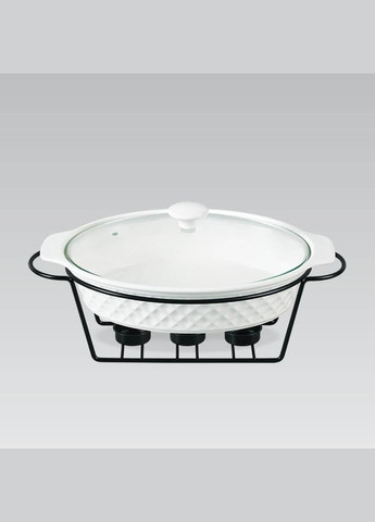 Марміт керамічний овальний Maestro 1.8 л (MR-11460-74) Розміри: 35 х 24 см Об'єм: 1,8 л Марміт овальний Скляна кришка з отвором для виходу пари З підігрівом від свічки або пальника Металева підставка Колір: білий Марміт керамічний Maestro MR-11460-74 об'ємом 1,8 літра має овальну форму та розміри 35 х 24 см. Він обладнаний скляною кришкою з отвором для виходу пари, що сприяє рівномірному приготуванню страв. Металева підставка забезпечує стійкість, а функція підігрівання від свічки або пальника дає змогу підтримувати температуру їжі впродовж усього застілля. Колір виробу — білий, що надає йому елегантного вигляду. Керамічний марміт Maestro — це елегантне та практичне рішення для подавання гарячих страв на стіл. Завдяки підігріву від свічки або пальника, ваші страви збережуть тепло впродовж усієї вечері, а стильний дизайн підкреслить вишуканість сервірування. Переваги: Виготовлений із міцної й екологічної якісної кераміки, яка не вбирає запахи та зберігає смак їжі. Скляна кришка з паровідводом допомагає стравам залишатися соковитими та ароматними. Металева підставка забезпечує стійкість і дає змогу використовувати підігрівання без ризику. Завдяки об'єму 1,8 л і розміру 35 х 24 см ідеально підходить для подавання м'яса, гарнірів, овочів та інших страв. Підтримує температуру без підігрівання в духовці або мікрохвильовій печі — зручно для сімейних обідів, банкетів і свят. Стильний білий колір легко поєднується з будь-яким столовим сервізом і прикрашає святковий стіл. Такий овальний марміт Maestro 1.8 л стане незамінним помічником у побуті та ідеальним вибором для тих, хто цінує гарне подавання та комфорт під час трапези. Якщо ви шукаєте марміт керамічний із підігріванням, зверніть увагу на модель Maestro MR-11460-74. Такий аксесуар ідеально підійде для домашнього використання і стане практичним рішенням для ресторанів, кафе та кейтрингу. Купити марміт овальний 1.8 л Maestro стоїть тим, хто хоче подавати страви гарно та водночас зберігати їх гарячими впродовж усього застілля. Завдяки зручній формі та універсальному дизайну, він гармонійно вписується в будь-яке сервірування. Основні переваги під час купівлі: зручний об'єм для подавання основних страв і гарнірів; сучасний дизайн, що підходить для святкового та повсякденного стола; можливість підтримувати температуру їжі без зайвого клопоту; — надійний вибір для дому та професійного використання. Такий марміт Maestro купити в Україні можна для щоденної кухні, святкових вечер і банкетів. Він стане практичним і стильним доповненням до вашого сервізу.