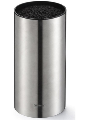 Колода-підставка Fissman Steel для сушіння та безпечного дбайливого зберігання кухонних ножів будь-якого типу (сталеві, керамічні, з протибактеріальним покриттям та інші), ножиць та інших кухонних аксесуарів. Зручна кругла форма підставки для компактного зберігання: діаметр 11см, висота 22см. Призначено для ножів із довжиною леза не більше 22см. Всередині підставки з нержавіючої сталі – поліпропіленовий наповнювач (поліпропіленове волокно). Наповнювач легко виймається з підставки для миття та догляду.