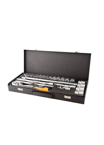 Набір торцевих насадок MASTERTOOL PROFI CrV 1/2 10-32 мм, 24 шт (78-4125) Професійний набір інструментів Mastertool призначений для використання в автосервісах та майстернях. До складу набору входить 24 елементи, виготовлені з високоякісної хром-ванадієвої сталі CRV50BV30, що дозволяє використовувати набір з додатком зусилля на робочий профіль. Торцеві головки розміром 10-32 мм виконані під квадрат 1/2 і мають шість граней. Гнутий вал для швидкого відкручування різьбових з'єднань. Шестірня тріскачки має 72 зуби, що забезпечує плавний хід. Також в набір входить подовжувачі 125 мм і 250 мм, кардан, комір 250 мм. Всі елементи набору мають антикорозійне покриття та розташовані в окремих осередках металевого кейсу. особливості: професійна серія універса