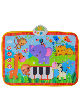 Музичний килимок "Зоопарк" від бренду Kids Hits. Кожен малюк буде вражений цим музичним килимком з різнокольоровими, яскравими вогниками! Веселі мелодії та мікси, голоси тварин зоопарку, кумедні вірші. Килимок зроблений з приємного матеріалу, який не викликає роздратування у малюка. Він стимулює дитину до руху. Малюк починає повзати, досліджувати звіряток на килимку та вивчати звуки. Режими відтворення: 9 віршів; 10 звуків тварин зоопарку; 10 кумедних міксів; реалістичні звуки піаніно. У килимку є тумблер включення та вимкнення, а також регулювання гучності. До того ж виріб зручний у використанні та не займає багато місця під час транспортування, адже його розмір становить 70*50 см. Просто складіть килимок в кілька згинів, щоби помістити його в сумку, і беріть із собою куди завгодно. Килимок рекомендовано для дітей від 8 місяців. Він розвиває у дитини когнітивні навички, сенсорні та музичні здібності. Для роботи використовуються 2 батарейки типу АА (є в комплекті).