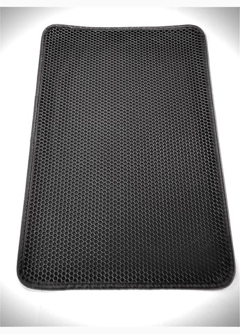 Двошаровий, гнучкий та довговічний гігієнічний килимок для котячого туалету та зони прийому їжі. Килимок складається з двох шарів, верхній шар виглядає у вигляді сітки, а нижній шар цільний з полотна. Завдяки такій конструкції, часточки наповнювача, бруду або їжі просипаються через верхній шар і залишаються на нижньому, що дозволяє забезпечити максимальну чистоту навколо котячого туалету чи зони прийому їжі домашніх вихованців. Переваги: • чистота в будинку, позбавляє необхідності постійно підмітати та мити підлогу навколо котячого туалету; • знижує витрати наповнювача (з килимка наповнювач легко перемістити назад в лоток); • еластичний, вологостійкий, легкий та міцний матеріал (ПВХ); • безпечний, відсутній різкий запах; • довгий час зберігає первинний вигляд і якість; • випускаються у різних кольорах (чорний та сірий). Використання: Покладіть килимок поруч з котячим лотком. Частинки наповнювача прилиплого до лап кота, залишаться на килимку і будуть просипатися крізь верхній шар, при цьому залишаючись на нижньому. За необхідності, залишки наповнювача на килимку можна буде легко витрусити назад у лоток. По мірі забруднення килимок можна помити під проточною водою або витерти вологою серветкою. Також килимок можна використовувати в зоні прийому їжі домашніх вихованців.