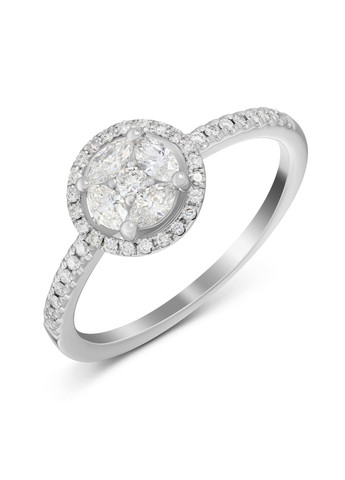 Дивовижна каблучка Привабливість доповнить романтичний образ сучасної леді. Коштовність виготовлена з білого золота 585 проби. У центрі композиції круглої форми розташувалися чотири діаманти в огранці «маркіз». Це різновид овального огранювання, який вирізняється загостреними кінцями. По центру між ними - круглий діамант. На тонкій гладкій шинці розмістилися 38 яскравих діамантів круглого огранювання. Придбайте каблучку Привабливість в Ювелірному Домі ZARINA і додайте у свій стиль грації та витонченості.