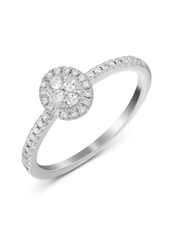 Класичний стиль прикрас став популярним завдяки жінкам шляхетного походження. Їх вишуканий та елегантний стиль надихав та буде надихати майстрів ювелірної справи на створення стильних і розкішних прикрас. Каблучка з колекції YOUR GRACE створена для леді, яка цінує вишуканість і знає чого вона хоче. Прикрасу виготовлено з білого золота 585-ї проби з нанесенням іскристого родованого покриття. Шинку прикрашають доріжки з блискучих круглих діамантів. Центральне місце займає композиція з діамантів у формі квітки, яка закріплена на круглій основі.