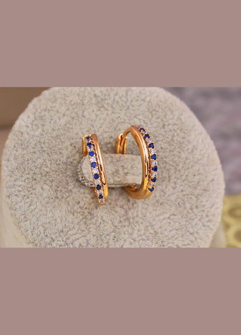 Сережки кільця Xuping Jewelry доріжка із синіх і білих з камінців золотисті діаметр 1,7 см ширина 3 мм застежка колечко