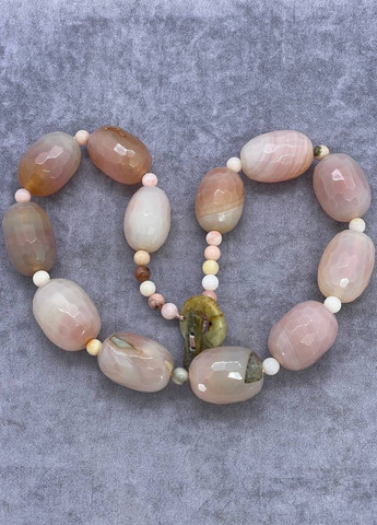 Намисто з натурального агату - чудова прикраса, яка привертає увагу своєю красою та унікальністю. Агат - це дорогоцінний камінь, який захоплює своєю різноманітністю кольорів і візерунків. Кожен камінь агату унікальний і має свої індивідуальні візерунки і текстуру, створені природою. Це надає намисту особливої привабливості та оригінальності. Намисто з натурального агату може бути одноколірним або може містити комбінацію різних відтінків і відтінків, створюючи цікавий і гармонійний образ. Ця прикраса ідеально підходить для тих, хто цінує натуральні камені та унікальні аксесуари. Його можна носити як на повсякденних виходах, так і на особливих випадках, додаючи вишуканості та шарму будь-якому вбранню. Намисто з натурального агату може бути чудовим подарунком для коханої людини або близького друга, підкреслюючи їхню індивідуальність і стиль. Характеристики Довжина 45 см Розмір намистини 14*11 мм Колір сірий Застібка кільце