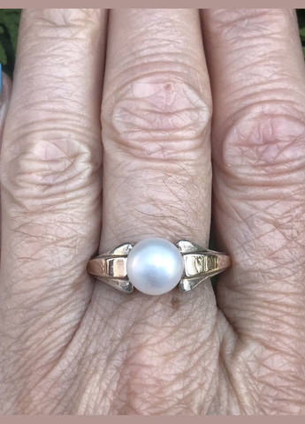 Кільце срібне із золотом та перлами Срібло 925 проба, золото 375 проба. Вага срібла 4,06 гр, вага золота 0,12 гр. Діаметр вставки 8 мм 328к