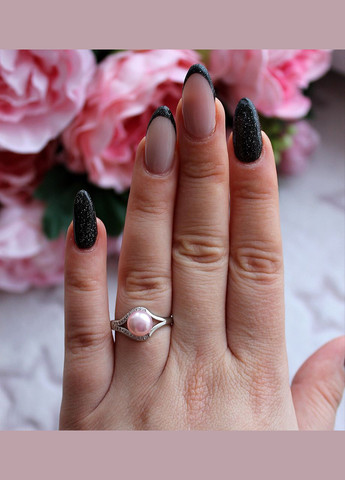 Жіноче кільце з рожевими перлами з неіржавкої сталі, колір срібло, розмір 18