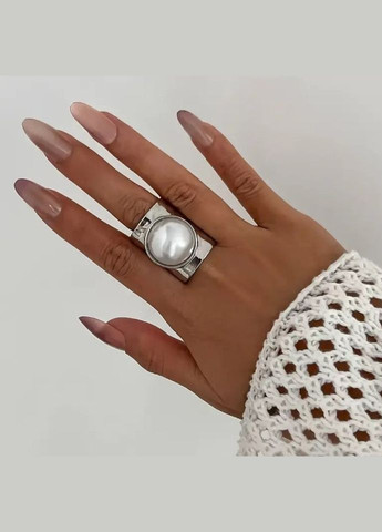 Жіноче кільце Акецентна біжутерія Модне стильне кільце з біжутерного сплаву сріблястий колір Висота фасаду 2.8 см Намисто у формі півсфери перлини (імітація) Діаметр намистини 2 см розмір 18 (8)