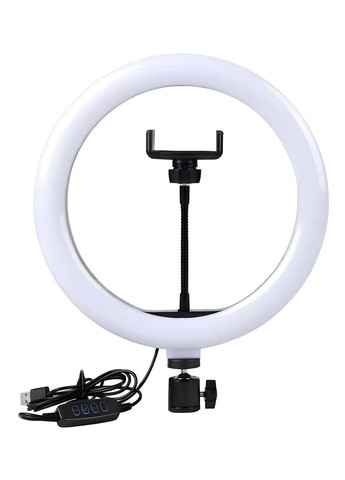 Кільцева лампа - це чудовий помічник у створенні світла для перукарів, візажистів, nail-майстрів, майстрів з нарощування вій, блогерів, тик-токерів, а також для всіх інших! Лампу також використовують усі, хто зацікавлений у хороших та якісних знімках: магазини, інтернет-магазини та шоу-руми. Живиться від порту USB ПК або ноутбука (або інших USB пристроїв, може працювати від мережі 220В (потрібно додатково блок живлення)) для освітлення «процесу» запису або передачі інформації. На дроті, що проводить струм, встановлений багатофункціональний вимикач з кількох варіантів керування. Переваги: - Висока яскравість - Відмінно підходить для зйомки як портретної, так і предметної. - Можливість регулювання температури світла - Гнучке кріплення для телефону - Затискний регульований тримач для телефону звільнить ваші руки - Працює від USB Характеристики: - Тип: кільцева лампа - Потужність: 20 Вт; - колірна температура: 3200K-5600K; - Діаметр кільця: 26 см; - кількість світлодіодів: 128 шт; - матеріал: Пластик; - Висота стійки: 34 см; - кріплення для двох телефонів; - колір свічення: холодний білий, теплий жовтий, змішаний; - Регулювання: є можливість регулювання температури світла та яскравості свічення; - індекс кольору: > 90 Ra; - Дальність висвітлення до 10 метрів. - матеріал затиску: вуглецева сталь; - джерело живлення: USB 5V (живлення від USB дасть можливість працювати від Power Bank, ноутбука, комп'ютера або кубика для зарядки телефонів та планшетів); - Кріплення на штатив/стійку (різьблення 1/4 дюйма); - Шарнірне з'єднання дозволяє обертати головку тримача на 360°, а також змінювати кут нахилу, що дозволяє встановлювати світлове обладнання під будь-яким необхідним кутом. Комплектація: - Кільцева лампа CXB-260A; - Кріплення на штатив/стійку; - кріплення для телефону на стійці - 2 шт; - кріплення для телефону на підсвічуванні; - стійка; - Пульт (вбудований на шнурку).