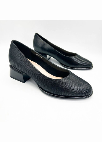Класичні жіночі туфлі на підборах, виготовлені з натуральної замші з лазерною обробкою, стануть вишуканим доповненням до вашого гардеробу. Внутрішня частина виконана з натуральної шкіри, що забезпечує комфорт і оптимальний мікроклімат для ваших ніг. Стійкий каблук висотою 5 см додає елегантності та зручності, а декоративне оформлення каблука виступає стильним акцентом, що підкреслює оригінальність моделі. Універсальний чорний колір і витончений дизайн роблять ці туфлі ідеальним вибором як для офісних, так і для святкових образів.