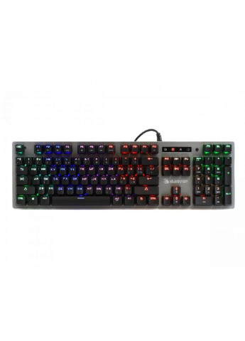 Клавіатури Bloody відрізняються унікальним дизайном, високою якістю і новітніми технологіями. Увага до деталей, зручності та ергономіці. Клавіатура Bloody – центральний елемент вашої ігрової системи, що забезпечує повне задоволення для ваших пальців. Особливості Технологія Light Strike. Особливості Інноваційна технологія LK (Light Strike) використовує оптичні перемикачі, що забезпечують блискавичний відгук до 0.2 мілісекунди. Геймери оцінять тактильний зворотний зв'язок та звук під час друку Жодних затримок. Реагує на світлових швидкостях без затримок (звичайні металеві перемикачі мають час відгуку 18-30 мс) Підсвічування. Натискання Fn + F12 увімкнути / вимкнути підсвічування Натискання Fn + ↑/ ↓ регулює рівень яскравості 100% N-клавіше натискання. Повний N-клавішний мультинатиск гарантує, що кожне натискання може одночасно реєструватися незалежно від того, скільки клавіш натиснуто або утримується одночасно, включаючи клавіші-модифікатори (Shift, Control та ALT) Металевий корпус. Поверхня виконана з алюмінієвого сплаву, що забезпечує довговічність та міцність Посилена пробіл. Подвійні гвинти + подвійні пружини + компенсує планка призначені для більшої міцності пробілу