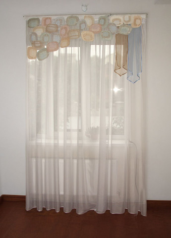 Карниз 1,5м На липучці. клейова частина липучки (клеїться на карниз). Тюль у комплект не входить. Тканина Туреччина Висота зліва 55см, висота справа 85см