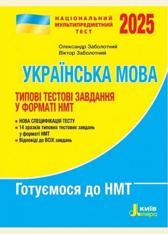 Посібник розроблено з метою допомогти абітурієнтам швидко та якісно підготуватися до складання національного мультипредметного тестування (НМТ) з української мови. За допомогою посібника можна як поступово готуватися до НМТ, так і скористатися ним в умовах обмеженого часу. Посібник містить 14 варіантів тренувальних тестів у форматі НМТ-2025 за специфікацією Українського центру оцінювання якості освіти (УЦОЯО) з урахуванням особливостей змісту тестових завдань останніх років. Посібник містить відповіді до всіх тестових завдань. Видання призначено для випускників закладів загальної середньої освіти, абітурієнтів, учителів.