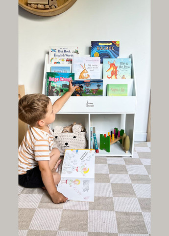 Уявіть собі ранок без хаосу: книги на своїх місцях, кубики розібрані, а ваша дитина з посмішкою тягнеться до улюбленої іграшки. Книжкова полиця — це не просто предмет меблів, вона щодня допомагає організувати навчання і розвинути самостійність. Стильна, безпечна і практична — просто створена для дітей. Особливості: - три полиці - закруглені краї - 4 стійкі ніжки Характеристики: - максимальне навантаження: 60 кг - розміри: 95х15х50 см - вага: 4,55 кг - вага в упаковці: 5,05 кг - колір: білий - матеріал: МДФ Комплектація: - полиця для іграшок - 4 ніжки - гвинти - ключ - інструкція з експлуатації - транспортна коробка