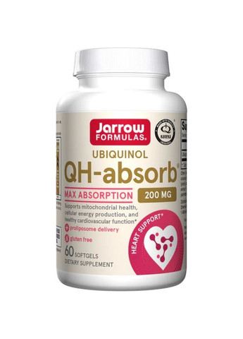 , Jarrow Formulas Ubiquinol QH-Absorb - антиоксидантний підтримка для здоров'я мітохондрій, вироблення енергії і нормальної роботи серцево-судинної системи., , , , Коензим Q10 міститься в тканинах, які б виробляли велику кількість енергії, таких як тканини серця, і підтримує здоров'я мітохондрій, вироблення енергії, сприяючи нормальній роботі серцево-судинної системи. Убіхінол - відновлена, активна форма коензиму Q10 з антиоксидантами, засвоюється значно краще, ніж звичайний коензим Q10., , , , Як приймати:, , , , Приймайте по одній (1) гелевою капсулі в день з прийомом їжі або за приписом лікаря., Вміст елементів у 1й порції1 капсула, Убіхінол (Kaneka QH) 200 мг, , Інгредієнти, Среднецепочечние тригліцериди, капсула (бичачий желатин, гліцерин, очищена вода, карамель [в якості світлового бар'єру], екстракт ріжкового дерева [в якості світлового бар'єру], соняшниковий лецитин, бджолиний віск, екстракт розмарину (для збереження свіжості), натуральна суміш токоферолів і аскорбіл пальмітат (для збереження свіжості)