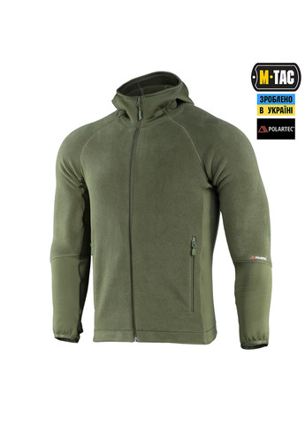 Якщо ви шукаєте зручну кофту для повсякденного використання, варто звернути увагу на Hoodie Polartec Sport від бренду М-Тас. Дана модель також відмінно підійде для бігу, фітнесу та занять активними видами спорту. Пошита із високоякісного флісу 200 Series від всесвітньо відомої компанії Polartec®. Це зносостійкий матеріал, який має відмінні зігріваючі та антипілінгові властивості. Еластичні гладкі вставки з преміального флісу надають виробу особливої міцності, тоді як щільний ворс із внутрішньої сторони забезпечує теплозахист. Кофта застібається на центральну блискавку та має дві бічні кишені. Особливий крій рукава у вигляді реглану допомагає досягти незвичайної форми плечей. Завдяки цьому виходить стильний округлий силует. Брендовані еластичні манжети зберігають форму і запобігають попаданню холодного повітря. Прямий крій кофти не сковує рухів під час фізичних навантажень. Зручний мякий капюшон відмінно захистить від вітру та негоди. Hoodie Polartec Sport підходить для носіння в осінній, зимовий і весняний періоди. Втім, і прохолодними літніми вечорами худі дозволить з комфортом провести час на свіжому повітрі. Кофта відмінно поєднується як із джинсами, так і зі спортивним або тактичним одягом. Polartec® 200 мякий і майже невагомий, має чудові теплоізоляційні властивості. На відміну від натуральних тканин, він не накопичує, а відводить надлишкову вологу від тіла, забезпечуючи комфорт. За тепловими властивостями в розрахунку на 1 грам матеріалу, Polartec 200 вдвічі перевершує овечу шерсть і бавовну. Вироби з Polartec® 200 можуть носитися окремо і в якості внутрішнього шару під вітрозахисний одяг.